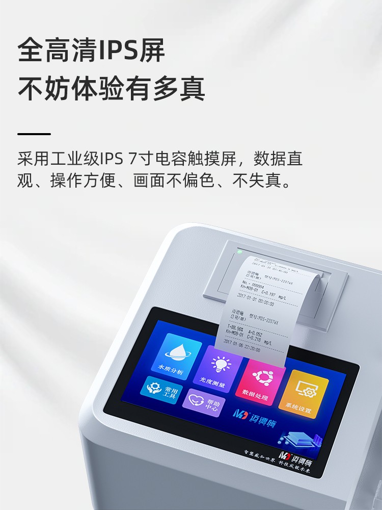人工智能語音播報(bào)提示,可隨意調(diào)節(jié)音量, 使用更方便更 配備112種預(yù)先編程的曲線,曲線數(shù)量990條,可濃度直讀,測(cè)量結(jié)果更精密; 具有數(shù)據(jù)存儲(chǔ)功能,可存儲(chǔ)90萬組數(shù)據(jù),并能自由查看; 10寸彩色液晶顯示觸摸屏,全中文操作模式,更便于操作掌握; 儀器自備校準(zhǔn)功能,可根據(jù)標(biāo)準(zhǔn)樣品計(jì)算, 并存儲(chǔ)曲線,無需手動(dòng)制作曲線; 配備USB接口傳輸功能,自帶打印機(jī),可打印當(dāng)前數(shù)據(jù)及存儲(chǔ)的歷史數(shù)據(jù); 采用管比色、皿比色,雙比色系統(tǒng)